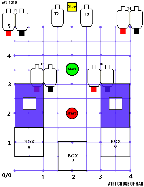 | スタート合図後の手順 | MarkA | トランプを引き、出た色の色のペーパーターゲットを任意の位置で2発以上ヒット |